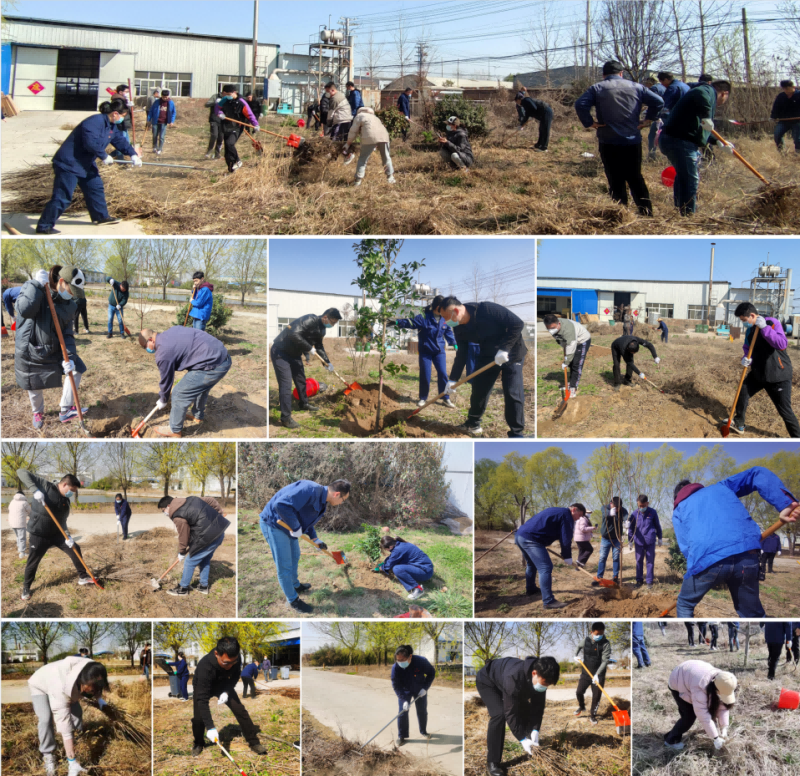 活動現(xiàn)場,大家干勁十足、分工協(xié)作、密切配合,明確清理區(qū)域后,就投身到雜草清理工作中,一派火熱忙碌景象,不一會兒,土地就變得干凈平整。緊接著大家更換工具,拿上鐵锨、鋤頭,刨坑栽樹,揮鍬鏟土、培實新土、堆起圍堰、提水澆灌……28株杏樹、桂樹迎風挺立。