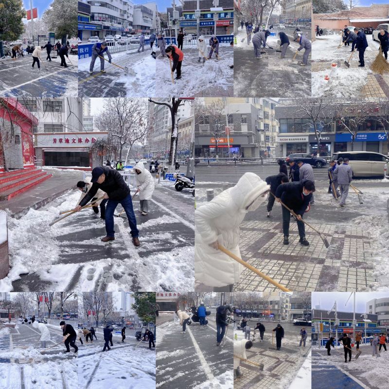 早上8點(diǎn)左右,許多黨員同志就提前到崗,自發(fā)組成了若干個(gè)掃雪大軍,各自負(fù)責(zé)不同區(qū)域的掃雪工作。大家頂著寒風(fēng),拿著鐵鍬、掃帚和雪鏟,爭(zhēng)著鏟、搶著掃,配合默契、齊心協(xié)力快速清理著地面厚厚的積雪。只見(jiàn)鐵鍬飛舞、落地有聲,掃帚擺動(dòng)、殘雪盡除,緊接著手端融雪劑的同志立即撒布開(kāi)來(lái),一個(gè)個(gè)忙碌的身影在皚皚白雪中構(gòu)成了一道特殊的風(fēng)景線(xiàn),引得路人聲聲贊嘆。面對(duì)這場(chǎng)極端天氣,海云公司黨員干部積極發(fā)揮黨員模范作用,以實(shí)際行動(dòng)為維護(hù)城市環(huán)境貢獻(xiàn)一份力量。