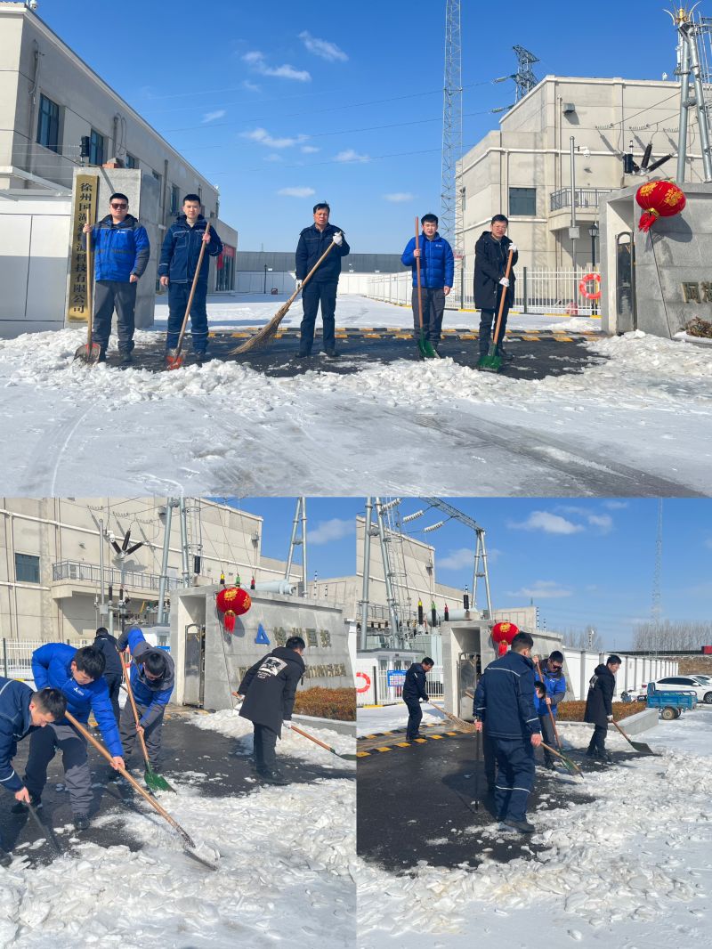 活動中,大家有序分工、齊心協(xié)力、默契配合,除雪小組負責對綜合辦公樓、廠區(qū)主干路、巡檢路線進行清掃,巡檢小組負責巡查輸電線路、風(fēng)機覆冰及運行狀態(tài),掃把、鐵鍬、無人機輪番上陣,在銀裝素裹的雪景中,忙碌的身影構(gòu)成了一道靚麗的風(fēng)景線。