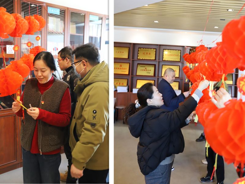 活動現(xiàn)場,一個個燈籠交錯點綴,烘托出歡樂祥和的節(jié)日氣氛。活動中共設置燈謎40余條,內(nèi)容涵蓋傳統(tǒng)文化知識、黨史以及二十大精神等,既兼具娛樂性和知識性,也激發(fā)了黨員干部職工對黨史及二十大精神了解的興趣。黨員們積極參與活動,認真挑選燈謎,相互討論謎底答案,場面十分熱鬧。