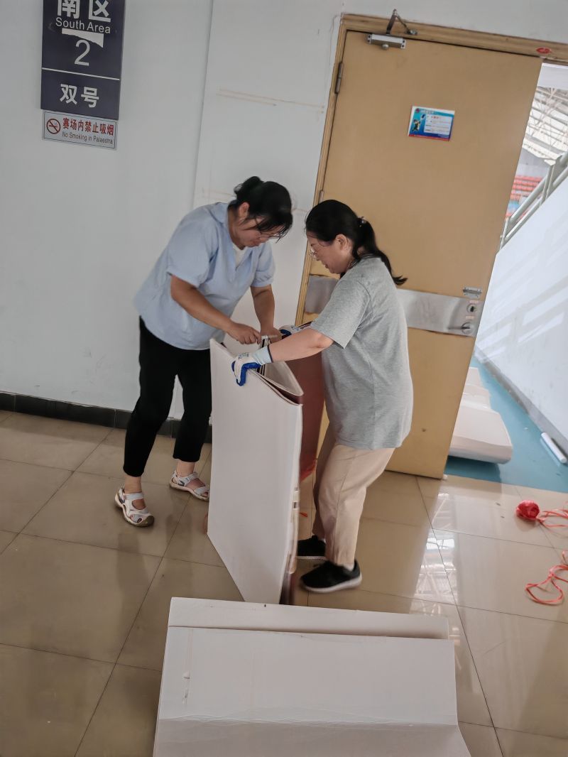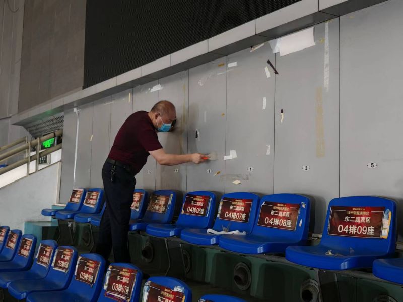 活動(dòng)當(dāng)天,全體黨員干部及部分不當(dāng)班職工準(zhǔn)時(shí)到達(dá)徐州體育館,按照預(yù)先分組進(jìn)行任務(wù)分配,以主席臺(tái)為中心,向兩邊區(qū)域延伸進(jìn)行地毯式清理。此次活動(dòng)主要清理體育館內(nèi)部四周墻體,摘除過(guò)期廣告牌、鏟除墻面標(biāo)簽及清理觀眾席衛(wèi)生死角等。