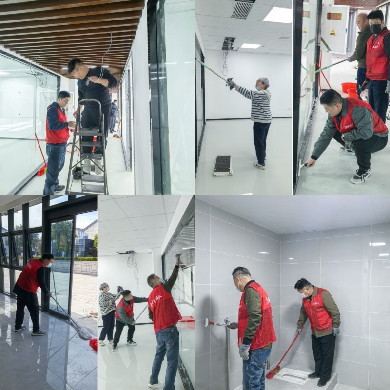 “支部建在項(xiàng)目上、黨旗插在工地上”。國泰地產(chǎn)黨支部始終堅(jiān)持黨建品牌與工程項(xiàng)目深度融合,項(xiàng)目在哪里黨員先鋒隊(duì)就在哪里。到達(dá)活動現(xiàn)場后,黨員先鋒隊(duì)成員和志愿者們主動拿起刮刀、塵推、地刷、掃把等10余件清潔工具,按照小組分工協(xié)作,清潔地面、清掃垃圾、擦拭玻璃,井然有序干起來,有的人頭發(fā)里沾滿了灰塵,有的人臉上掛滿了汗珠,有的人汗水濕透了衣衫。大家不嫌臟、不嫌累,熱情高漲,紛紛以為企業(yè)降本增效為榮,樂在其中。