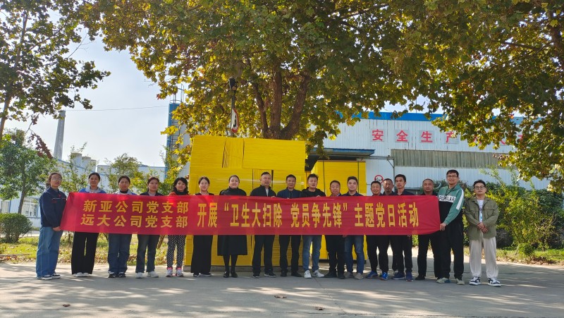 為積極推動(dòng)支部結(jié)對(duì)共建,提升現(xiàn)場(chǎng)文明生產(chǎn)、廠區(qū)規(guī)范管理水平,進(jìn)一步營(yíng)造環(huán)境優(yōu)美、干凈整潔的生產(chǎn)辦公環(huán)境。近日,新亞公司黨支部與遠(yuǎn)大公司黨支部在遠(yuǎn)大公司廠區(qū)內(nèi)聯(lián)合開(kāi)展“衛(wèi)生大掃除 黨員爭(zhēng)先鋒”主題黨日活動(dòng)。各支部黨員、預(yù)備黨員、積極分子參加了此次活動(dòng)。