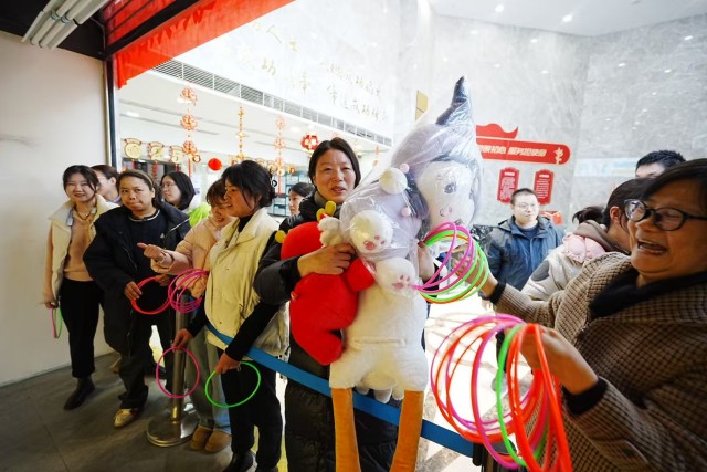 “趣味套圈”活動(dòng)現(xiàn)場(chǎng)同樣氣氛熱烈,吸引了眾多租戶踴躍參與?;顒?dòng)精心準(zhǔn)備了豐厚的獎(jiǎng)品,小小的套圈在空中飛舞,歡聲笑語(yǔ)不斷。這一活動(dòng)不僅充滿趣味,更在無(wú)形之中拉近了華強(qiáng)資產(chǎn)公司與租戶之間的距離,增進(jìn)了彼此的感情。大家在游戲的歡樂(lè)氛圍中,共同迎接新年的到來(lái),也套住了對(duì)來(lái)年滿滿的好運(yùn)期許。
