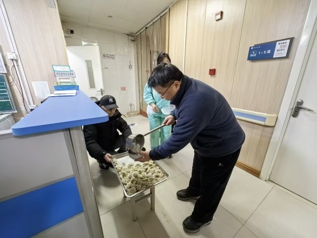 隨后,慰問小組走進各科室和病房,為一線醫(yī)護人員、住院患者及家屬送上一碗熱騰騰的餃子,所到之處洋溢著濃厚的新春喜樂氛圍。