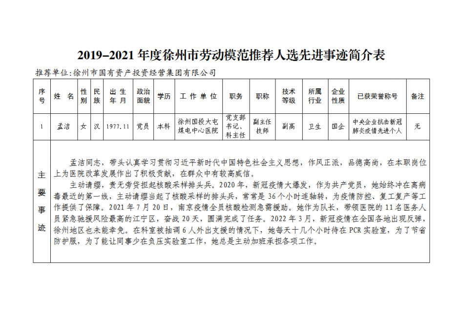 根據(jù)《關(guān)于做好2019-2021年度徐州市勞動(dòng)模范推薦評(píng)選工作的通知》精神和市總工會(huì)要求,為體現(xiàn)公開、公平、公正原則,廣泛聽取群眾意見,接受群眾監(jiān)督,現(xiàn)將我單位推薦人選予以公示。