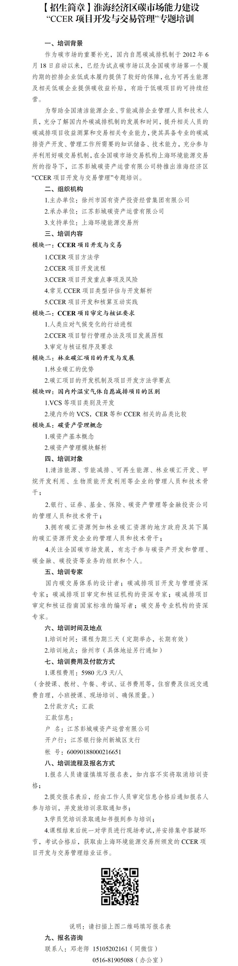 【招生簡章】淮海經濟區(qū)碳市場能力建設“CCER項目開發(fā)與交易管理”專題培訓