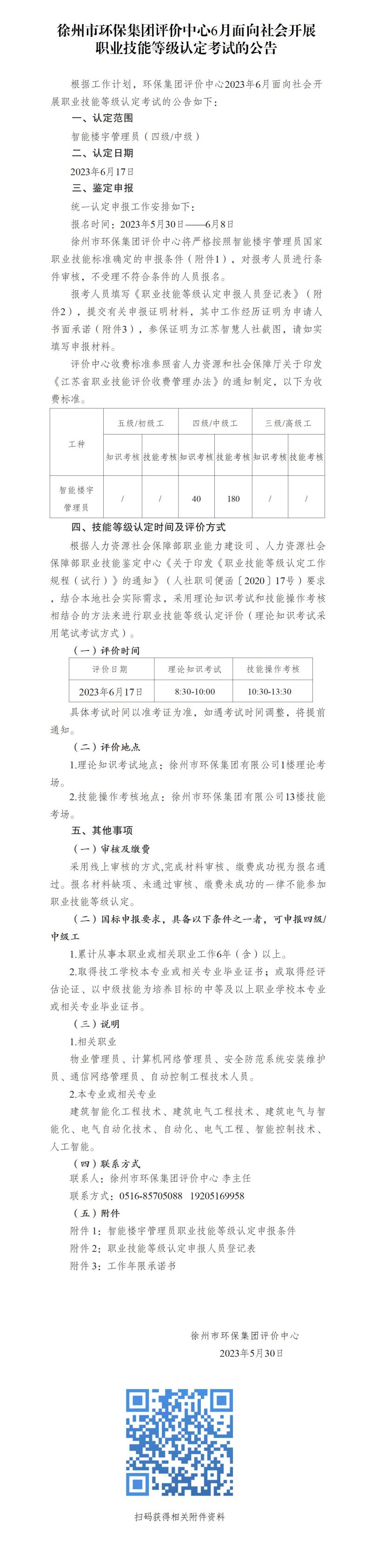 徐州市環(huán)保集團(tuán)評(píng)價(jià)中心6月面向社會(huì)開(kāi)展職業(yè)技能等級(jí)認(rèn)定考試的公告