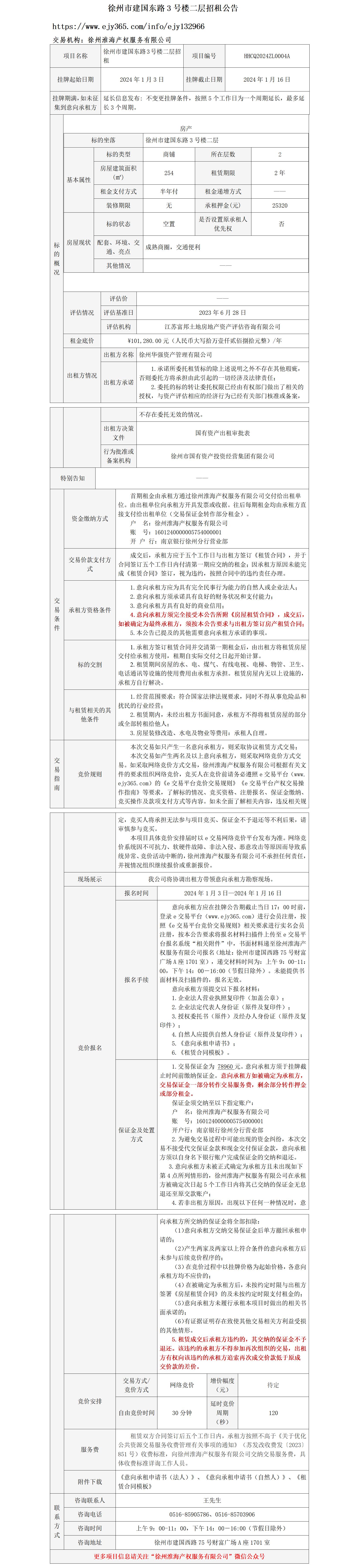徐州市建國(guó)東路3號(hào)樓二層招租公告