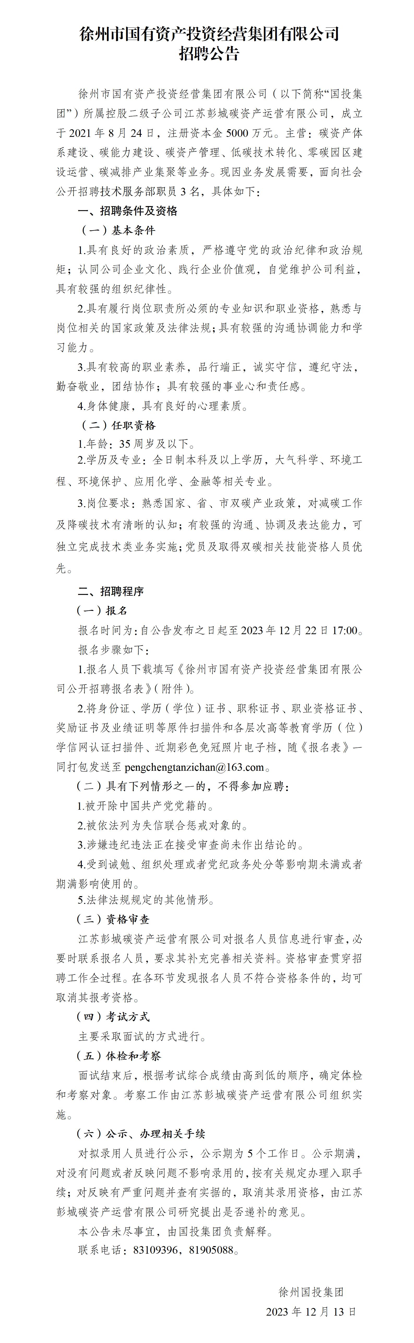 徐州市國(guó)有資產(chǎn)投資經(jīng)營(yíng)集團(tuán)有限公司所屬企業(yè)公開(kāi)招聘公告