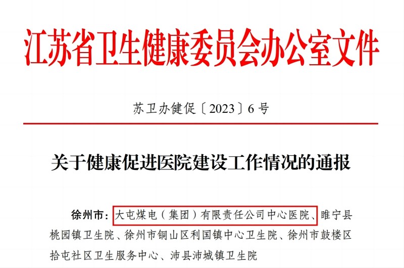 喜報(bào)!大屯煤電公司中心醫(yī)院被確定為省健康促進(jìn)醫(yī)院