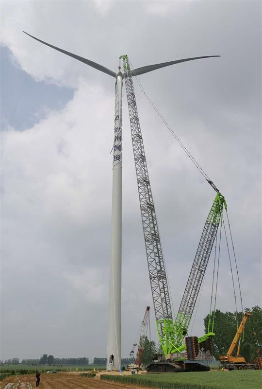 在吊裝作業(yè)過程中,國湖公司及各參建單位通力配合、密切協(xié)作、無縫對接,全力克服場地空間小、勞動強(qiáng)度大、設(shè)備運輸難、現(xiàn)場風(fēng)速大等多種困難,嚴(yán)格按照風(fēng)機(jī)吊裝的規(guī)范及工藝要求,有序完成吊車荷載試驗,塔筒、機(jī)艙、葉輪組裝對接工作,經(jīng)專業(yè)力學(xué)驗收,確保各項安全指標(biāo)合格后,葉輪高空吊裝作業(yè)一次成功。
