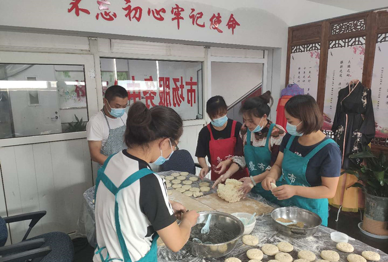 9月30日清晨,經(jīng)過幾日的精心策劃和準備,活動正式拉開序幕。大家主動參與、分工合作,有的進行和面與發(fā)酵工序,有的進行拌料工序,還有的做著月餅上籠前的準備工序,活動現(xiàn)場氣氛熱烈,經(jīng)過一系列的制作工序,香甜誘人、熱氣騰騰的手工月餅出爐了,黨支部成員將它們送到了業(yè)戶的手中,確保100多位業(yè)戶全部吃上了傳統(tǒng)手工月餅,業(yè)戶們在享用月餅的同時也感受到物華公司濃濃的關(guān)愛。