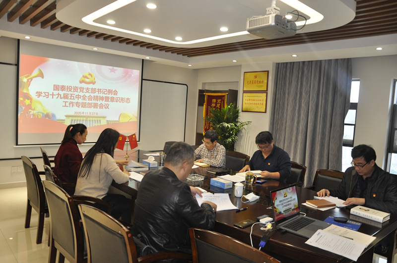 為全面貫徹中國共產(chǎn)黨第十九屆中央委員會第五次全體會議精神,落實李曉東同志在集團公司黨委意識形態(tài)工作專題會議上的講話精神,近日,國泰投資黨總支召開學(xué)習(xí)十九屆五中全會精神暨意識形態(tài)工作專題部署會議,進一步強化意識形態(tài)工作責(zé)任,推動意識形態(tài)工作扎實開展。會議由國泰投資黨總支書記霍凱主持,各直屬黨支部書記參加。