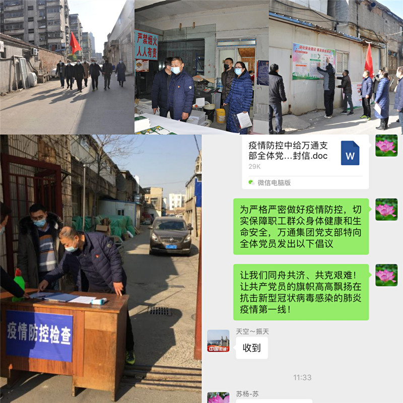 萬通集團黨支部通過學(xué)習強國會議平臺傳達集團公司疫情防控文件精神和商辦工業(yè)公司疫情防控工作部署,并在黨員微信群發(fā)出倡議:“讓我們同舟共濟、共克艱難!讓共產(chǎn)黨員的旗幟高高飄揚在抗擊新冠肺炎疫情的第一線!”1月18日下午,在支部書記張安民同志的帶領(lǐng)下,黨員先鋒隊全體隊員來到公司所屬商機廠,分工分頭開展工作,有的懸掛疫情防控宣傳展板、分發(fā)疫情防控知識手冊,有的在防控崗登記測溫、向業(yè)戶發(fā)放倡議書,大家干得熱火朝天,忘記了天寒、忘記了時間。