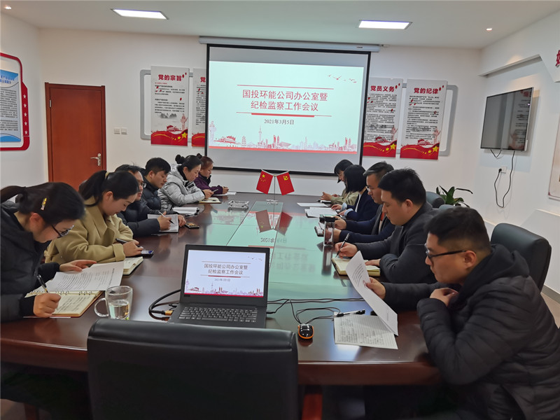 為進(jìn)一步提升國(guó)投環(huán)能公司辦公室綜合工作水平、持續(xù)推動(dòng)紀(jì)檢監(jiān)察工作走深走實(shí),3月5日,國(guó)投環(huán)能公司組織召開(kāi)2021年度第一次辦公室暨紀(jì)檢監(jiān)察工作會(huì)議。國(guó)投環(huán)能公司辦公室有關(guān)負(fù)責(zé)人、各部室信息宣傳員,合肥分公司及各所屬三級(jí)全資、控股公司綜合部負(fù)責(zé)人參加會(huì)議,會(huì)議由辦公室主任陳威主持。
