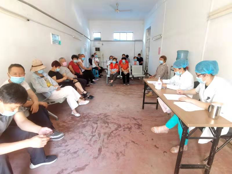 保衛(wèi)人員認真維持隊伍秩序,醫(yī)生仔細進行詢問篩查,護士動作輕柔接種,一切都在忙碌而有序中進行。為了避免受種居民忍受天氣的炎熱與漫長的等待,醫(yī)院在室外排隊區(qū)設(shè)置了遮陽棚;開放了安裝有空調(diào)房的多功能廳,讓居民們在里邊休息邊等待,由保衛(wèi)人員負責叫號提醒;留觀區(qū)備有飲用水及杯子,供留觀居民飲用。接種工作一直持續(xù)到晚上8點,1200支新冠病毒疫苗最終清零。