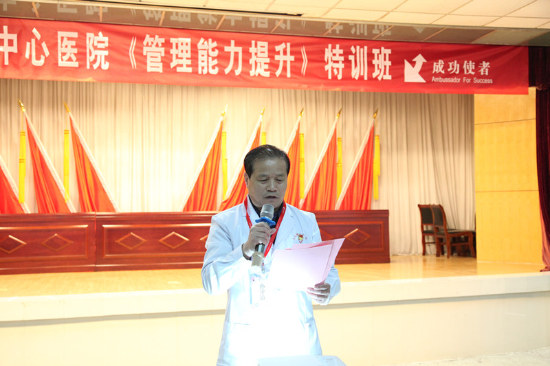 院黨委書記孫守訪在開班儀式致辭中指出,舉辦這次管理能力提升特訓(xùn)班,旨在我們學(xué)習(xí)先進(jìn)的管理經(jīng)驗,解放思想、轉(zhuǎn)變觀念,提高大家的綜合素養(yǎng),打造一支政治過硬、立場堅定、無私奉獻(xiàn)的干部隊伍,保障醫(yī)院改革發(fā)展。要求參培人員無論是從醫(yī)院的發(fā)展、從科室的管理方面,還是從個人的提升方面,都要珍惜此次培訓(xùn)機(jī)會,切實達(dá)到增強(qiáng)本領(lǐng)、提高素養(yǎng)、保障發(fā)展的目的。