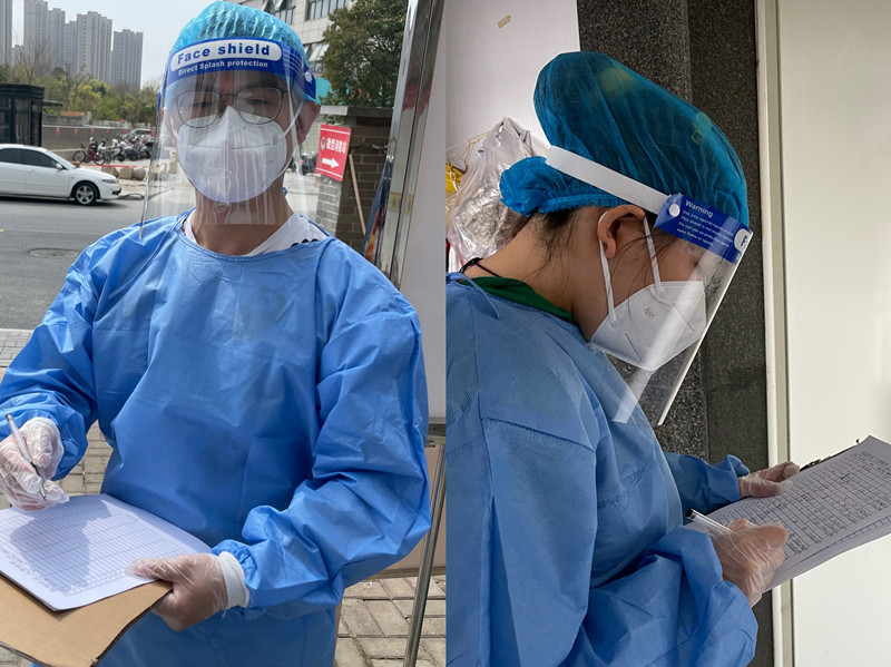 4月7日,是夫妻倆連續(xù)做社區(qū)抗疫志愿者的第7天,他們接到機(jī)場(chǎng)社區(qū)布置的最新任務(wù),下午2:00開(kāi)始在九里峰景小區(qū)內(nèi)開(kāi)展“掃樓”行動(dòng)。“7個(gè)單元,98層,196戶,晚上6:00前必須完成任務(wù)!”思維敏捷的馮子晏迅速估算了時(shí)間,按照每戶1分鐘,只要三個(gè)多小時(shí),完成任務(wù)不在話下。然而,在實(shí)際操作過(guò)程中,他才發(fā)現(xiàn)自己想簡(jiǎn)單了。很多居民警惕性高,要盤問(wèn)好久才開(kāi)門;有些居民記不清核酸檢測(cè)次數(shù),需要打開(kāi)手機(jī)小程序查看;還有的人家人口總數(shù)多,逐一問(wèn)完記完要過(guò)很久;而且電梯等起來(lái)也太耗時(shí)。怎么辦?夫妻二人改變策略,首先乘坐電梯來(lái)到最高層,自上而下逐層步行走訪,然后由妻子小夏敲門詢問(wèn),增強(qiáng)親和力,丈夫小馮做好信息記錄。即使這樣,也不敢有絲毫耽擱,更別提再浪費(fèi)時(shí)間跑到遠(yuǎn)處找?guī)?。小夏雖然心疼,也只能安慰小馮“再忍忍”。一個(gè)下午的“馬不停蹄”,記完最后一個(gè)字,小馮立刻將登記表塞給小夏,飛快地向廁所跑去。而小夏彎了彎膝蓋,緩解下疲勞,隨手脫下手套,這才發(fā)現(xiàn)敲門的兩個(gè)手指關(guān)節(jié)已微微有些紅腫,按了按,疼地不自覺(jué)輕聲“啊”了一聲。