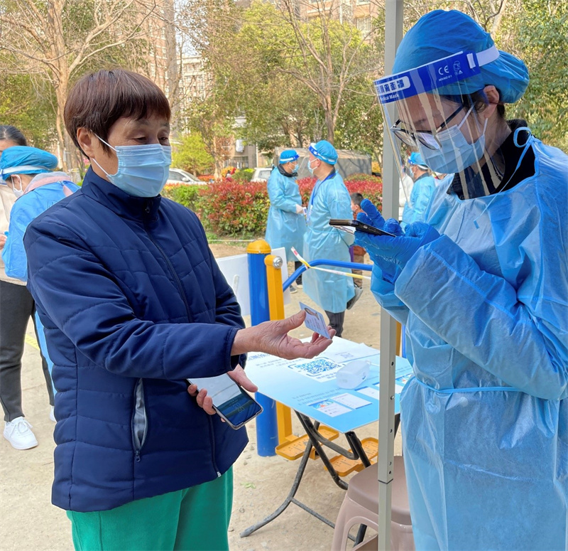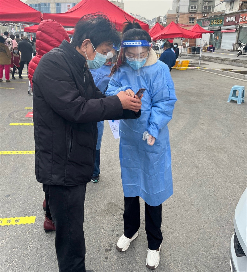 “孩子,謝謝你啊,辛苦了”子房山社區(qū)的爺爺奶奶們對王雪斐說道。王雪斐是國泰公司一名90后青年,第一次去子房山社區(qū)做核酸檢測時,她發(fā)現(xiàn)社區(qū)里面老年人比較多,因為不會用兩碼造成檢測效率低,老年人排隊時間久,急需一個能夠主動幫助老年人的志愿者。她打定主意后,聯(lián)系社區(qū)加入了戰(zhàn)疫工作,在完成發(fā)放防疫物資、出入證件、維持隊伍秩序、登記居民信息的基礎(chǔ)工作間隙,她還主動幫助爺爺奶奶們打開兩碼、耐心的告知核酸檢測時間和注意事項。一天下來,忙前忙后,她卻滿不在乎地說道:“不要緊,疫情就是命令,為了人民的利益,為了戰(zhàn)疫的勝利,我們青年人就是戰(zhàn)疫的一塊磚,哪里需要哪里搬。”