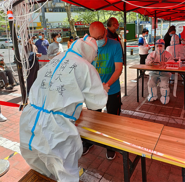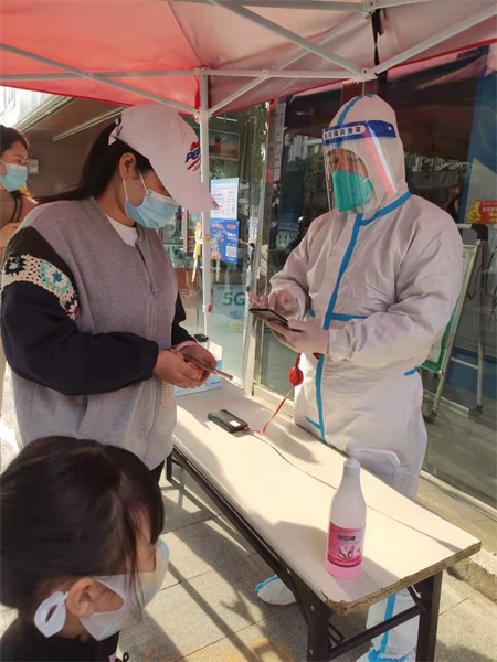 他第一時間報名參加子房街道王杰社區(qū)志愿者,4月2日,接到任務(wù)負責(zé)“黃碼”人員的核酸檢測信息登記工作。起初心里略過一絲緊張,擔(dān)心自己也變成“黃碼”,但轉(zhuǎn)念想到自己是一名黨員,黨員就是旗幟,黨徽就是鏡子,要發(fā)揚出“越是艱險越向前”的精神。于是他毅然穿上防護服走上工作崗位,在專業(yè)人員的指導(dǎo)下,很快勝任了工作。以后的每一天他都堅守在“黃碼”檢測信息登記的崗位上。