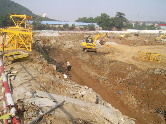 為了加快施工進度,項目部已提前做好了工程的準備工作,如已完成了項目的平整、爆破、開挖、渣土清運等工作,完成了場地施工道路、臨時用水、臨時用電等工作。施工隊伍及監(jiān)理公司已進場,地下基槽業(yè)已開挖完畢,碎石開始回填,工程施工已按預定進度全面展開。