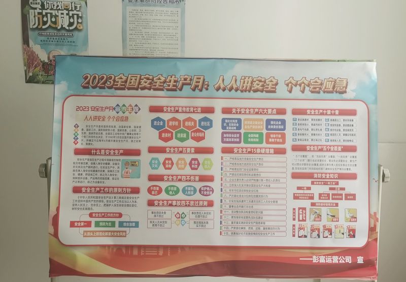 彭富運營公司:今年6月是第22個全國“安全生產(chǎn)月”,彭富運營公司上下樹牢安全發(fā)展理念,壓緊壓實安全生產(chǎn)責任,深入排查安全風(fēng)險隱患,扎實推進問題整改,筑牢安全生產(chǎn)防線,營造安全、和諧、發(fā)展的生產(chǎn)環(huán)境和氛圍。6月上旬,公司召開“安全生產(chǎn)月”啟動會議,學(xué)習(xí)了習(xí)近平總書記關(guān)于安全生產(chǎn)的重要論述,真正做到學(xué)懂弄通,學(xué)以致用,融入日常安全生產(chǎn)管理工作。傳達了徐州市委、市政府及集團公司安全生產(chǎn)相關(guān)文件,深刻學(xué)習(xí)領(lǐng)會了集團公司2023年安全(消防)環(huán)保工作會議精神。通過制定安全生產(chǎn)月活動計劃,制作安全生產(chǎn)月宣傳海報、條幅,以及動員員工積極參與集團公司舉辦的安全知識競賽,進一步增強安全意識。