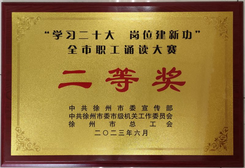 在市總工會(huì)聯(lián)合市委市級(jí)機(jī)關(guān)工委、市全民閱讀辦共同主辦的“學(xué)習(xí)二十大 崗位建新功”全市職工誦讀大賽活動(dòng)中,徐州國(guó)投集團(tuán)原創(chuàng)配樂誦讀作品《凝心聚力 奮進(jìn)新征程,敢為善為建功新時(shí)代》榮獲二等獎(jiǎng)。