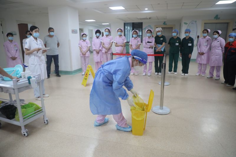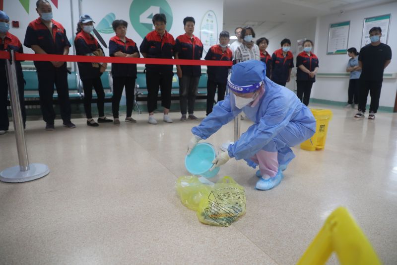 為進(jìn)一步規(guī)范醫(yī)療廢物管理,提高醫(yī)務(wù)人員及保潔人員在發(fā)生醫(yī)療廢物意外遺撒、泄露后的應(yīng)急處置能力,避免因醫(yī)療廢物泄露意外事件導(dǎo)致人身傷害和環(huán)境污染事故的發(fā)生,7月20日下午,徐州澳洋華安康復(fù)醫(yī)院開(kāi)展醫(yī)療廢物遺撒、泄露應(yīng)急處置演練活動(dòng)。此次演練由醫(yī)院感染管理科組織實(shí)施,醫(yī)務(wù)部、護(hù)理部、后勤保障部等部門(mén)密切配合,各臨床科室護(hù)士、保潔人員共同參加。