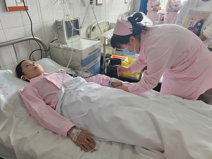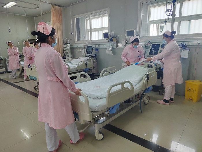 重癥醫(yī)學(xué)科模擬呼吸機(jī)發(fā)生氧氣供應(yīng)不足出現(xiàn)報(bào)警,無法正常工作的場景。當(dāng)班護(hù)士即刻檢查儀器,此時(shí)患者血氧飽和度正在下降,立即呼叫醫(yī)生和另一名護(hù)士進(jìn)行緊急處理,遵醫(yī)囑立即脫機(jī),連接備用氧氣瓶及簡易呼吸器進(jìn)行輔助通氣,之后患者血氧飽和度上升,生命體征逐漸平穩(wěn)。隨后上報(bào)護(hù)士長,聯(lián)系后勤保障部進(jìn)行檢查維修,并上報(bào)不良事件。骨科應(yīng)急預(yù)案演練主要模擬責(zé)任護(hù)士在巡回病房時(shí),發(fā)現(xiàn)正在輸血的患者突然出現(xiàn)寒戰(zhàn)癥狀的場景。責(zé)任護(hù)士立即停止輸血并更換了輸血袋及輸血器,通知值班醫(yī)生和護(hù)士長,緊急啟動(dòng)輸血反應(yīng)應(yīng)急預(yù)案,并上報(bào)不良事件。演練結(jié)束后護(hù)理部、護(hù)士長及護(hù)理骨干對(duì)應(yīng)急預(yù)案程序、制度落實(shí)、操作規(guī)范、人文關(guān)懷等方面進(jìn)行綜合評(píng)價(jià)。