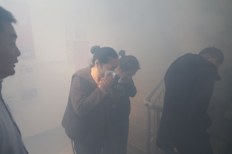 培訓(xùn)結(jié)束后,全體參訓(xùn)職工參加了應(yīng)急疏散演練,張?zhí)斐刂魅芜M(jìn)行全程指導(dǎo),演練采用消防演習(xí)煙霧等先進(jìn)手段,更加貼近現(xiàn)實(shí)火情,取得了顯著成效。