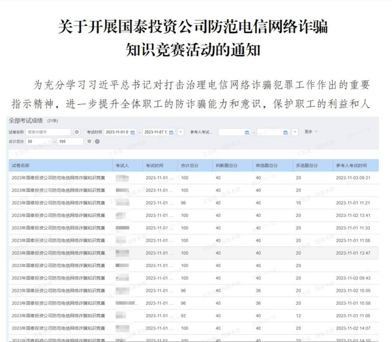 國泰投資公司采取“多點發(fā)力、持續(xù)保障”的工作方法護航“無詐企業(yè)”創(chuàng)建工作。動員全體員工積極關(guān)注并安裝“國家反詐中心”視頻號和APP,積極宣傳96110預(yù)警勸阻專線、12381涉詐預(yù)警勸阻短信系統(tǒng)等官方反詐“神器”,運用最新科學(xué)技術(shù)成果保障員工人身財產(chǎn)安全。