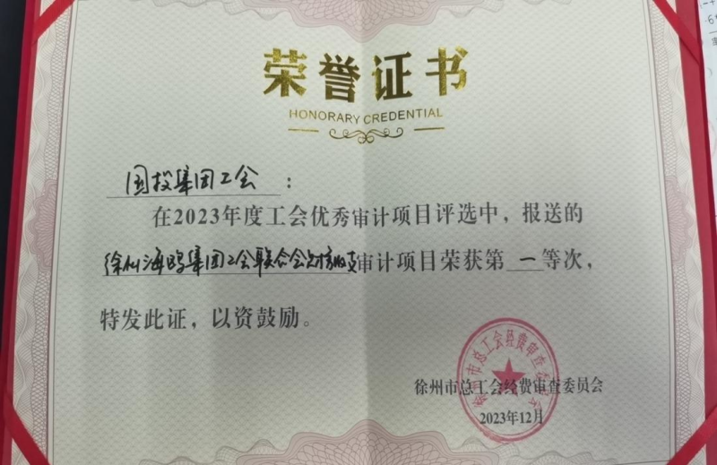 為進(jìn)一步強(qiáng)化工會(huì)經(jīng)審組織監(jiān)督職能,規(guī)范工會(huì)審計(jì)行為,切實(shí)提升工會(huì)審計(jì)質(zhì)量,市總工會(huì)經(jīng)審會(huì)開展2023年度工會(huì)優(yōu)秀審計(jì)項(xiàng)目評(píng)選工作,并于近日公布了2023年度工會(huì)優(yōu)秀審計(jì)項(xiàng)目評(píng)選結(jié)果,國(guó)投集團(tuán)選送的審計(jì)項(xiàng)目“徐州海鷗集團(tuán)工會(huì)聯(lián)合會(huì)財(cái)務(wù)收支”榮獲第一等次。