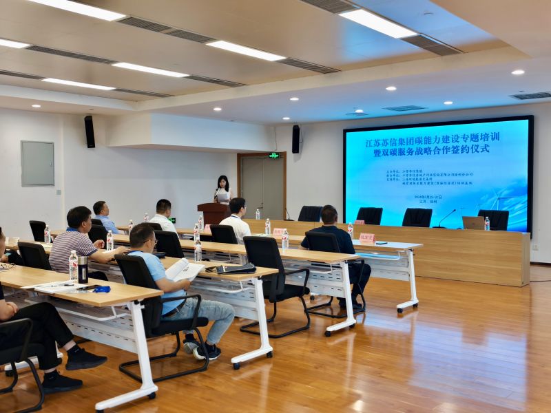為提升江蘇蘇信集團碳能力水平建設(shè),把握雙碳目標下企業(yè)發(fā)展新機遇,加入碳管理體系建設(shè)服務(wù)生態(tài)圈,共同推動雙碳目標的實現(xiàn)。在上海環(huán)境能源交易所、碳管理體系能力建設(shè)(淮海經(jīng)濟區(qū))培訓(xùn)基地的支持下,由江蘇蘇信集團主辦,江蘇蘇信徐州分公司參與的江蘇蘇信集團碳能力建設(shè)專題培訓(xùn)暨雙碳服務(wù)戰(zhàn)略合作簽約儀式于5月29-31日在徐州順利舉辦。江蘇蘇信集團總裁龔敏飛,江蘇蘇信徐州分公司總經(jīng)理杭宏亮,彭城碳資產(chǎn)公司相關(guān)負責(zé)人出席活動并致辭。