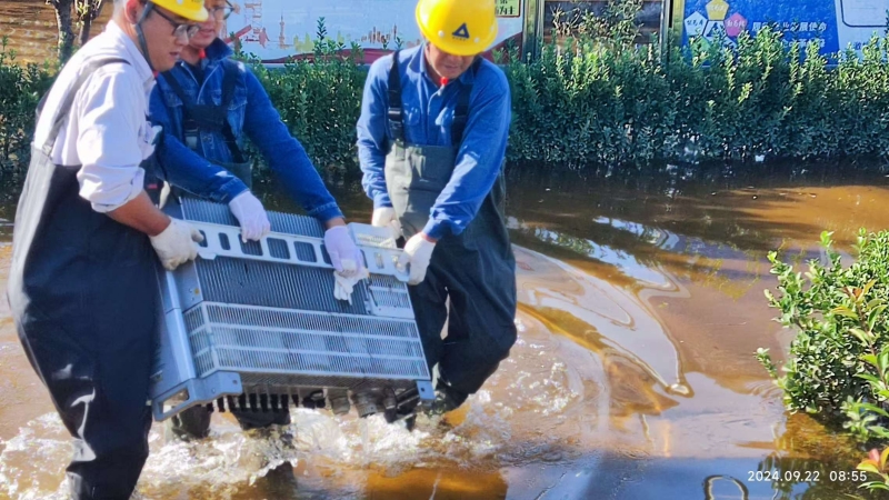 9月19日02時(shí)57分,暴雨黃色預(yù)警信號(hào)解除,面對(duì)一片狼藉的現(xiàn)場(chǎng),全體員工沒(méi)有絲毫懈怠,迅速?gòu)目购閾岆U(xiǎn)模式轉(zhuǎn)入查驗(yàn)設(shè)備運(yùn)行狀況與恢復(fù)廠容廠貌階段?!爸煊瘢s緊采購(gòu)下水褲、烘干機(jī)、消毒液?!眲⒅冶榉乐褂旰蟠紊鸀?zāi)害、加快設(shè)備檢查與恢復(fù)進(jìn)程,迅速做出工作安排,對(duì)受損物資進(jìn)行全面、精準(zhǔn)地統(tǒng)計(jì),詳細(xì)記錄受損程度和原因,向保險(xiǎn)公司提交詳盡的理賠材料。經(jīng)統(tǒng)計(jì),除3臺(tái)逆變器、1臺(tái)柜式空調(diào)、1扇電動(dòng)大門等設(shè)備受損外,光伏區(qū)組件、支架、電纜、箱變、逆變器、匯流箱等重要發(fā)電設(shè)備均未受損。