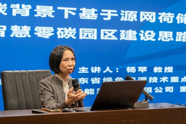 在授課過(guò)程中,楊蘋(píng)教授系統(tǒng)闡述了源網(wǎng)荷儲(chǔ)一體化的基本概念、系統(tǒng)架構(gòu)、運(yùn)行機(jī)制及其在提升能源效率、保障電力安全、促進(jìn)新能源消納方面的重要作用。結(jié)合典型案例,重點(diǎn)講解如何運(yùn)用源網(wǎng)荷儲(chǔ)一體化模式,統(tǒng)籌園區(qū)能源供應(yīng)、電網(wǎng)運(yùn)行、負(fù)荷管理和儲(chǔ)能配置,實(shí)現(xiàn)園區(qū)的低碳零碳運(yùn)行,打造綠電園區(qū)。最后,結(jié)合徐州產(chǎn)業(yè)特點(diǎn)、資源稟賦,共同探討本地區(qū)推動(dòng)源網(wǎng)荷儲(chǔ)協(xié)同互動(dòng)、建設(shè)零碳園區(qū)的潛在路徑與策略建議。