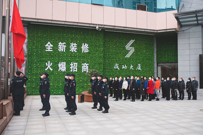 為慶祝成功大廈以全新的姿態(tài)面向大眾,3月16日上午,華強(qiáng)資產(chǎn)公司領(lǐng)導(dǎo)班子、本部中層干部及下屬三級(jí)公司領(lǐng)導(dǎo)班子、成功大廈全體員工在成功大廈廣場(chǎng)舉行隆重的“升旗儀式”。集團(tuán)公司黨委委員、副總經(jīng)理郭壘出席活動(dòng)。